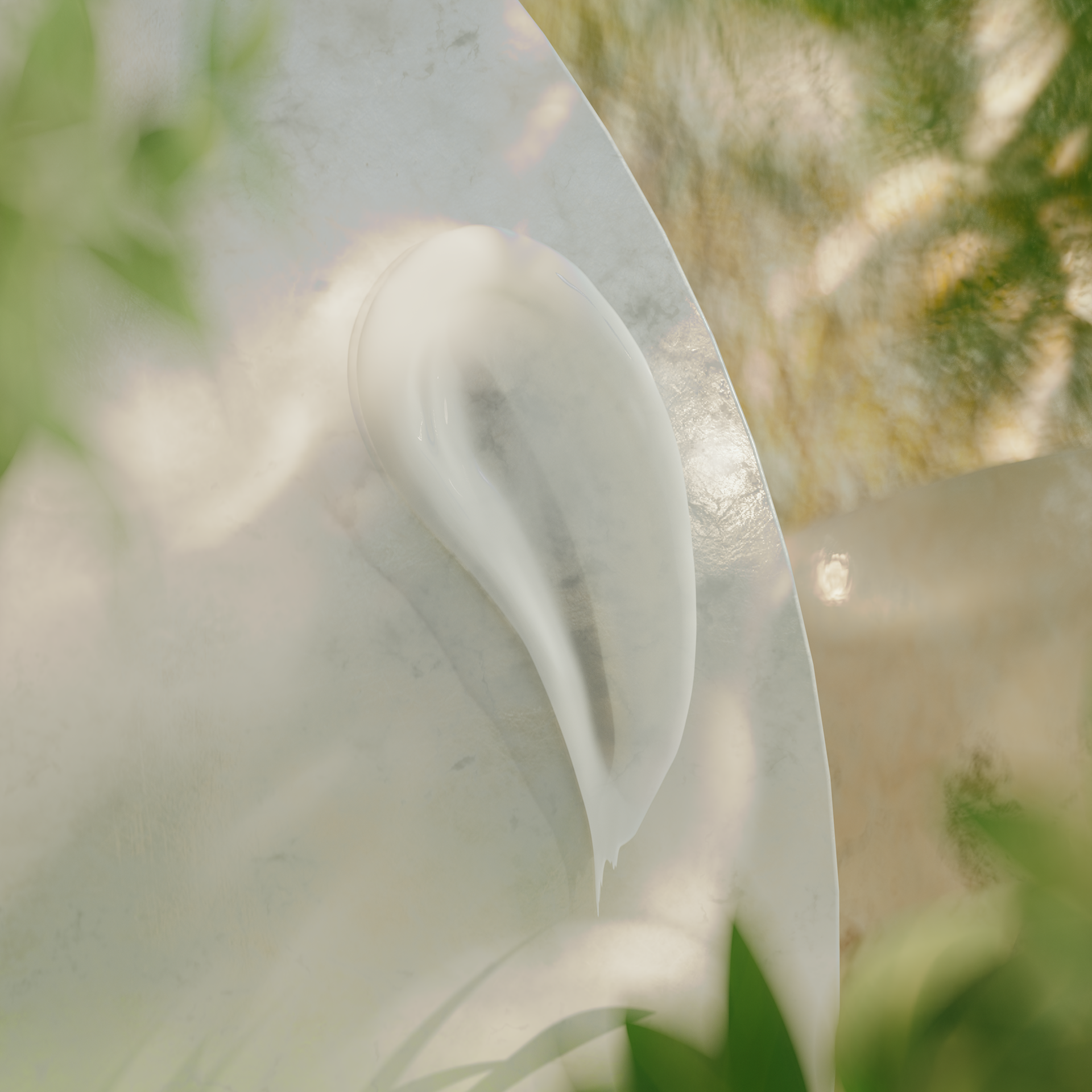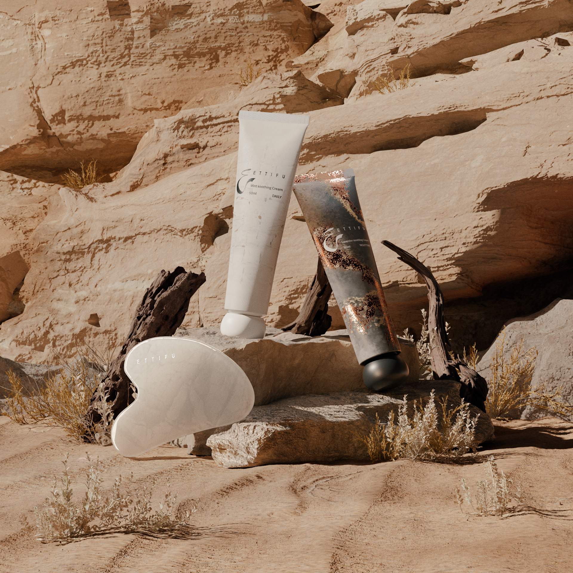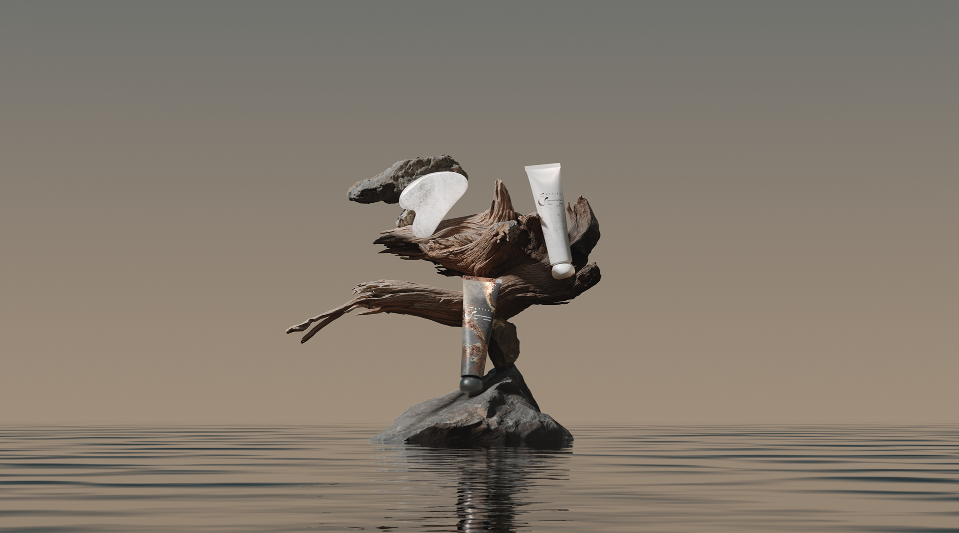 Applying the cream on objects with different textures reinforces the product's connection with nature while enhancing its artistic and unique qualities.