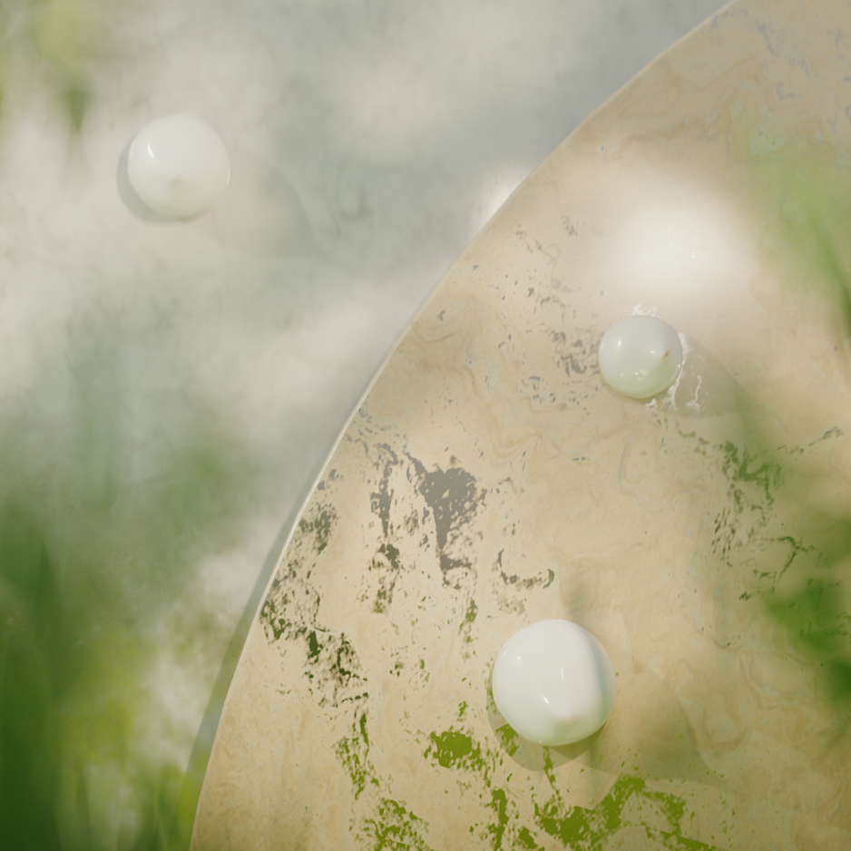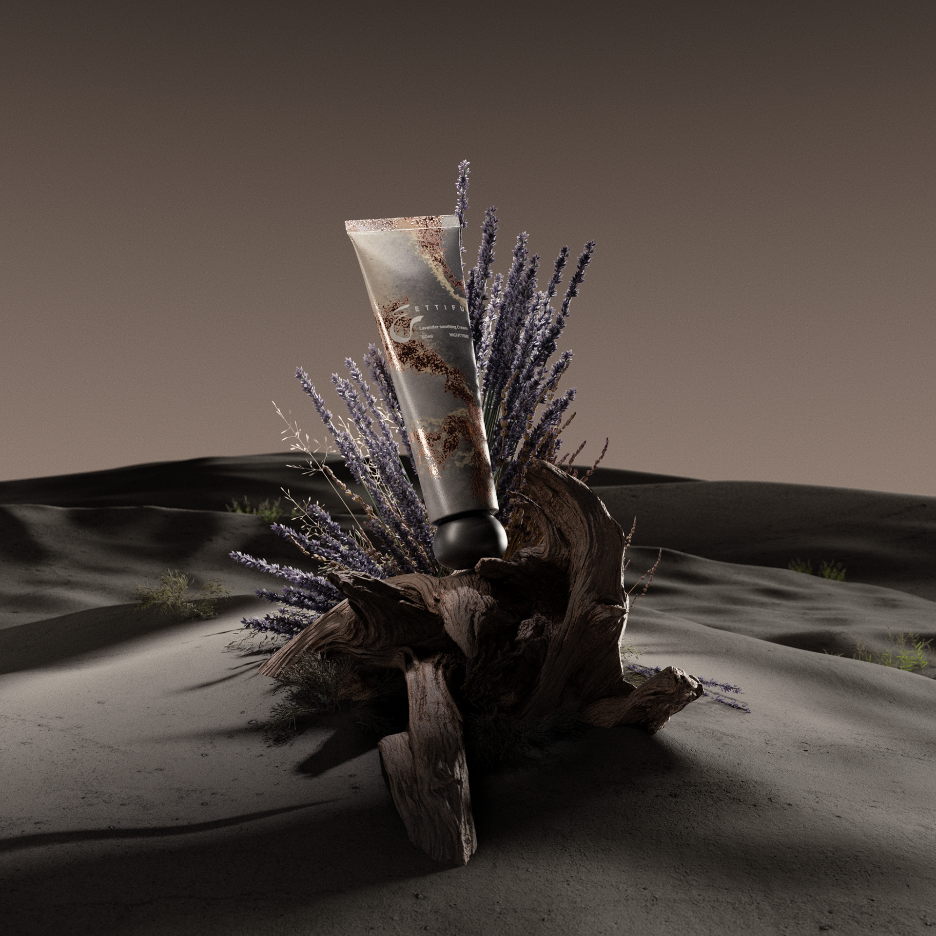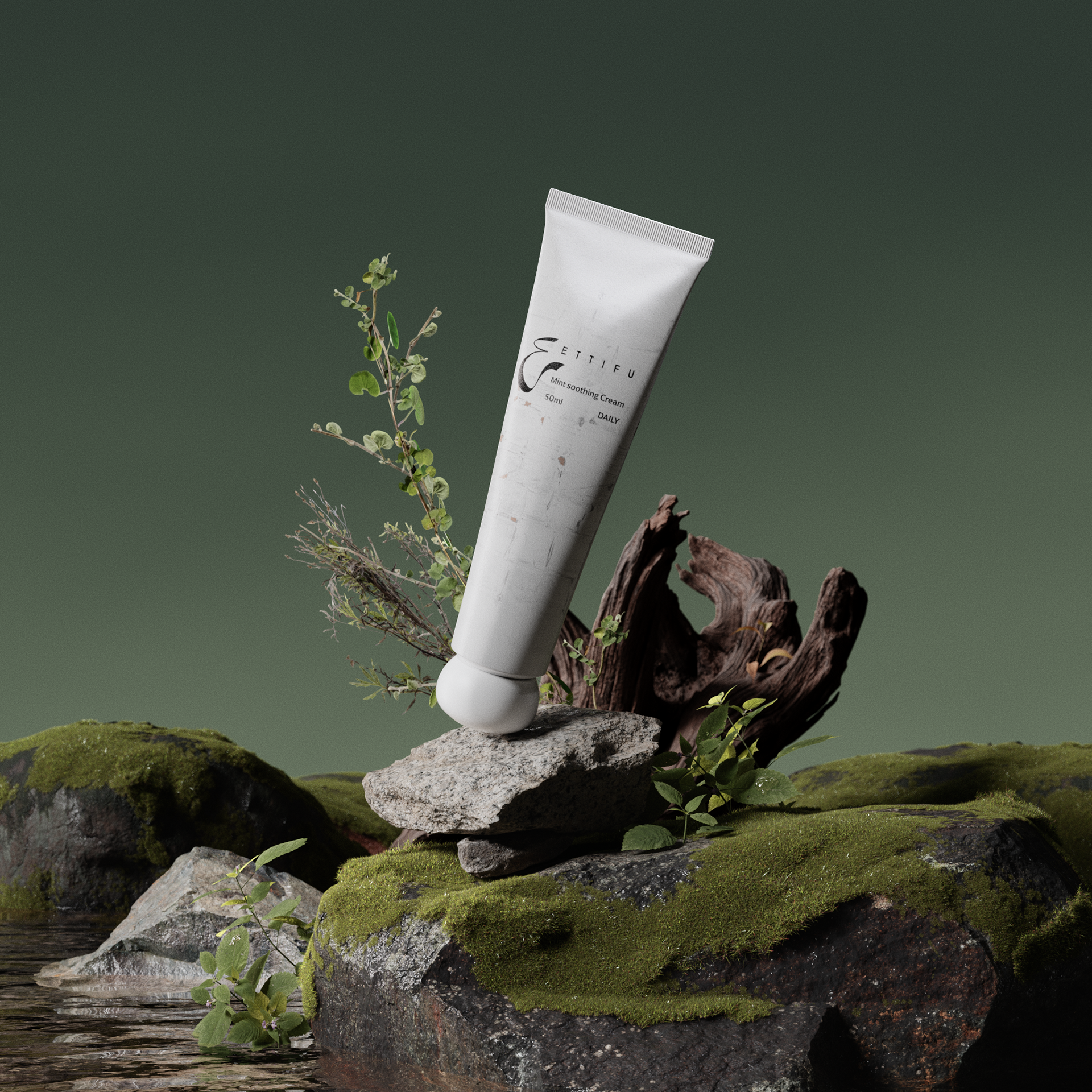 Applying the cream on objects with different textures reinforces the product's connection with nature while enhancing its artistic and unique qualities.