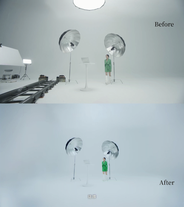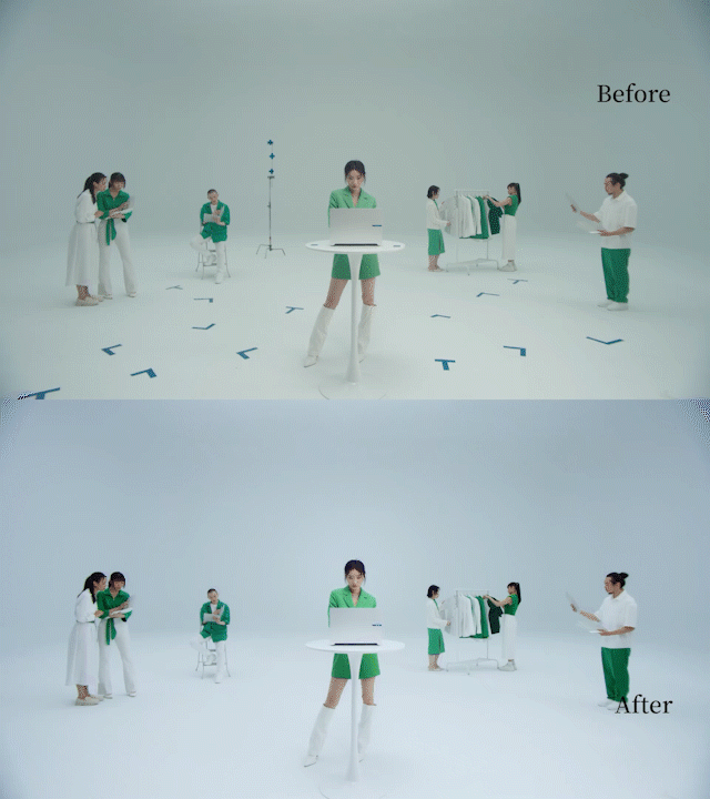 Unwanted props and tracking markers were removed frame by frame to ensure a clean and focused visual.