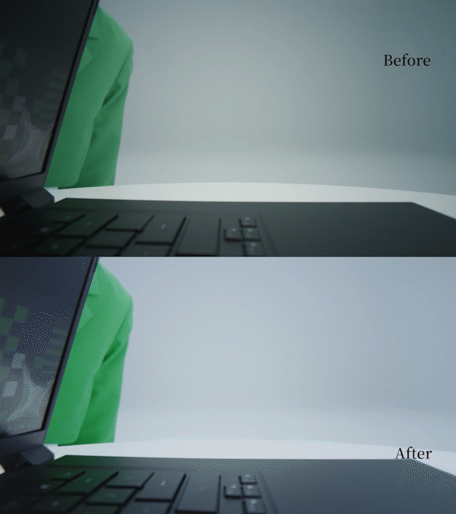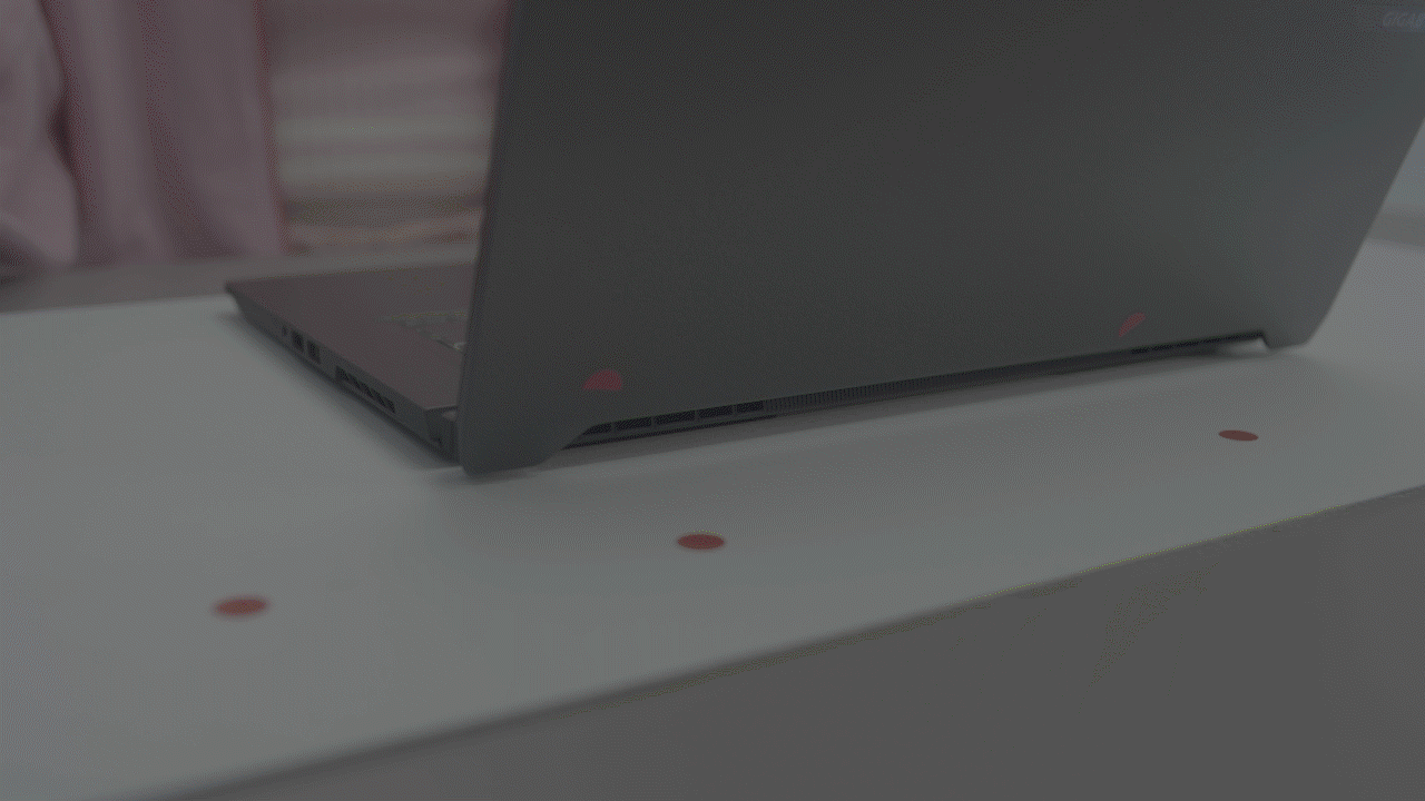 Sound waves materialize into rhythmic "noise walls," visually representing the laptop's noise-canceling capabilities in meeting mode. This VFX segment translates acoustic functions into immersive visuals, blending technical innovation with sensory design.