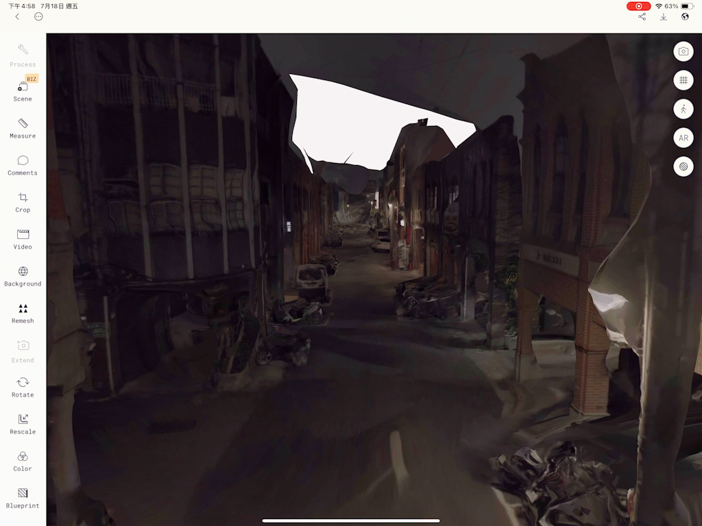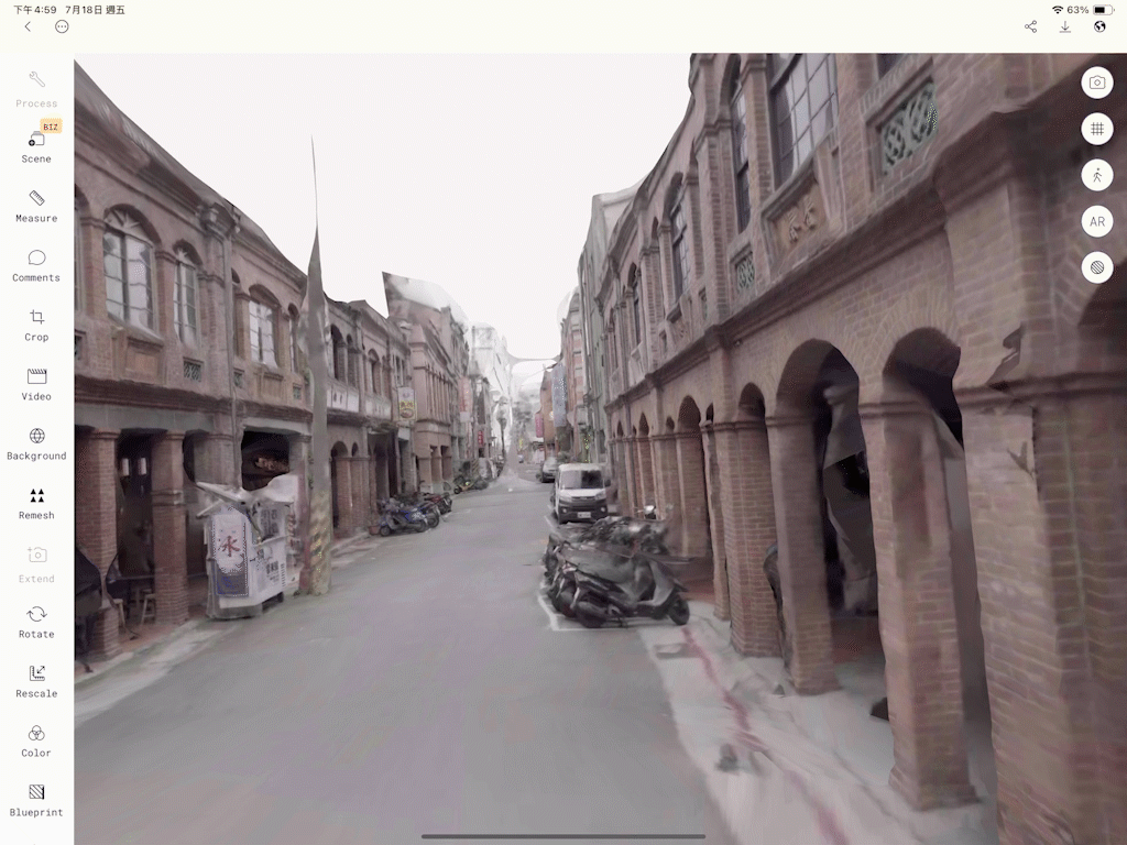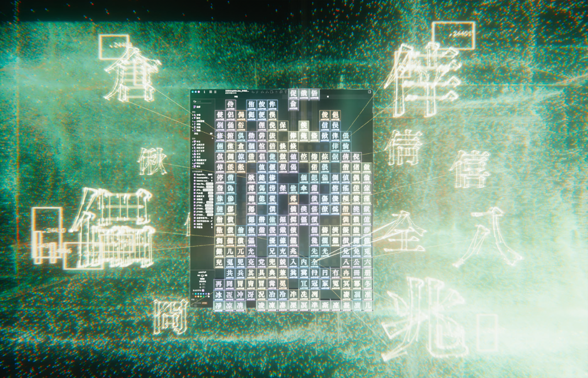 We utilized TouchDesigner to create generative lines, point clouds, and particle effects that evoke the transformation of text into digital data. These elements emphasize the shift from analog typesetting to real-time information flow. Additionally, we conducted 3D scans on location in Dihua Street, converting its architectural forms into point cloud data. This hybrid approach—combining procedural visuals with site-specific scans—allows us to blur the line between reality and a speculative digital future.