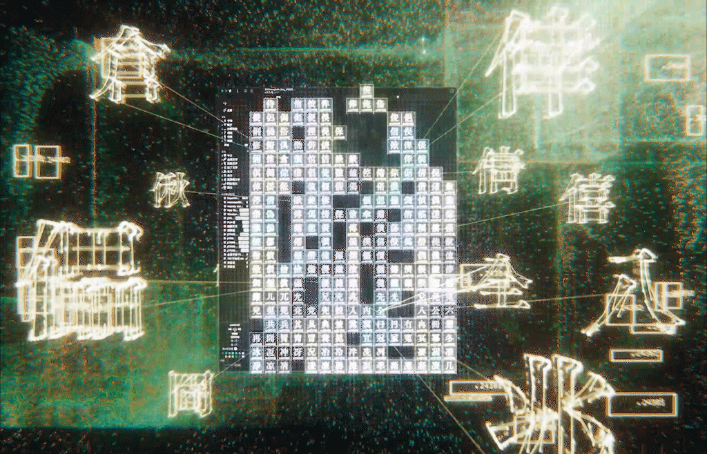 To reinterpret the transition from tradition to digital, we adopted a point cloud technique as our visual metaphor. Historically, the modular nature of metal type has been illustrated through Tetris-like forms. In our film, these solid forms dissolve into particles—symbolizing their digitization—and then reassemble into a cyberpunk vision of a futuristic Taiwan. This aesthetic transformation reflects not only a shift in media, but a continued reverence for heritage, projected into the world of tomorrow.