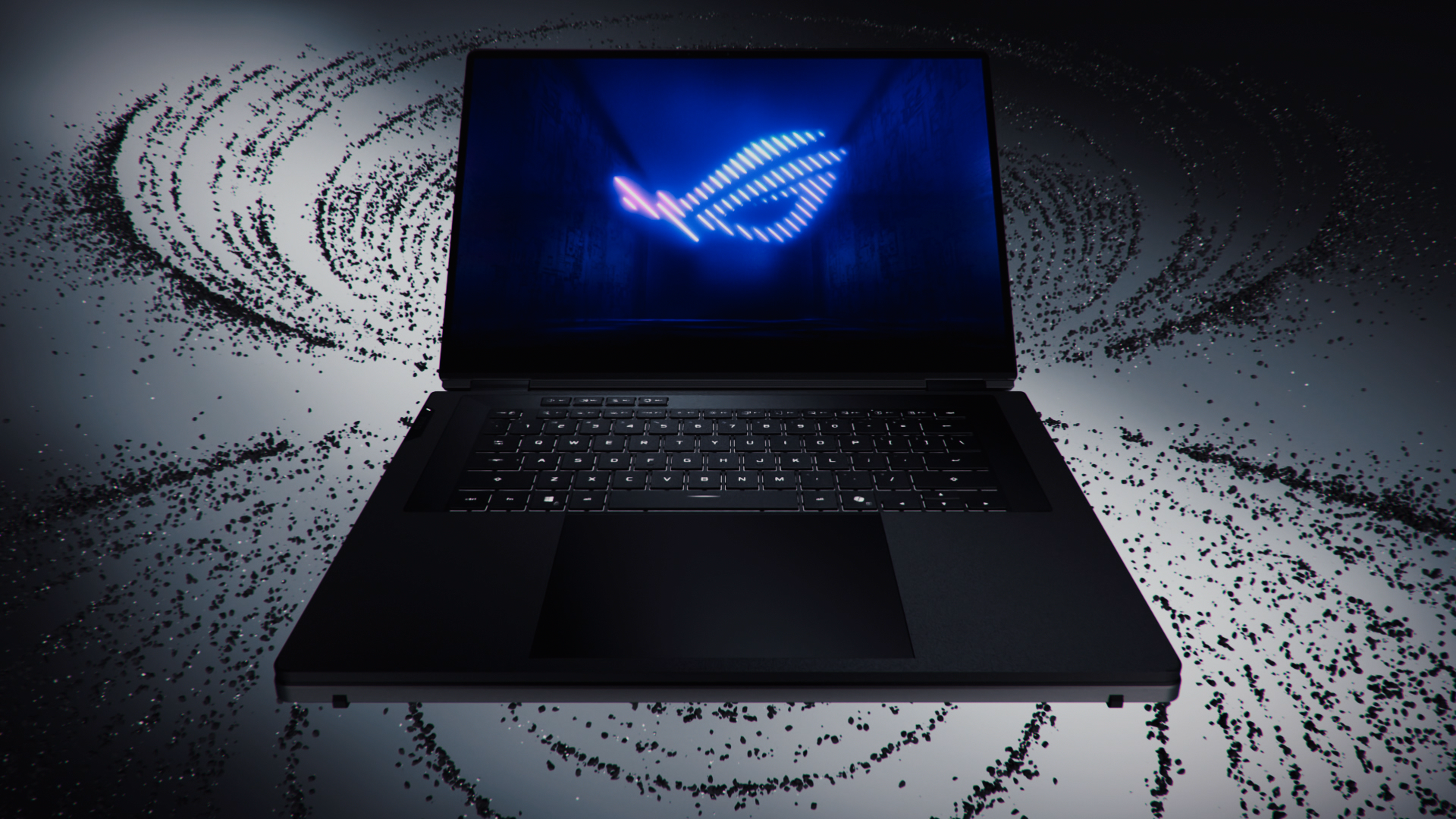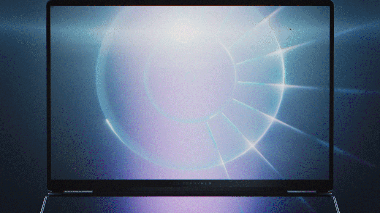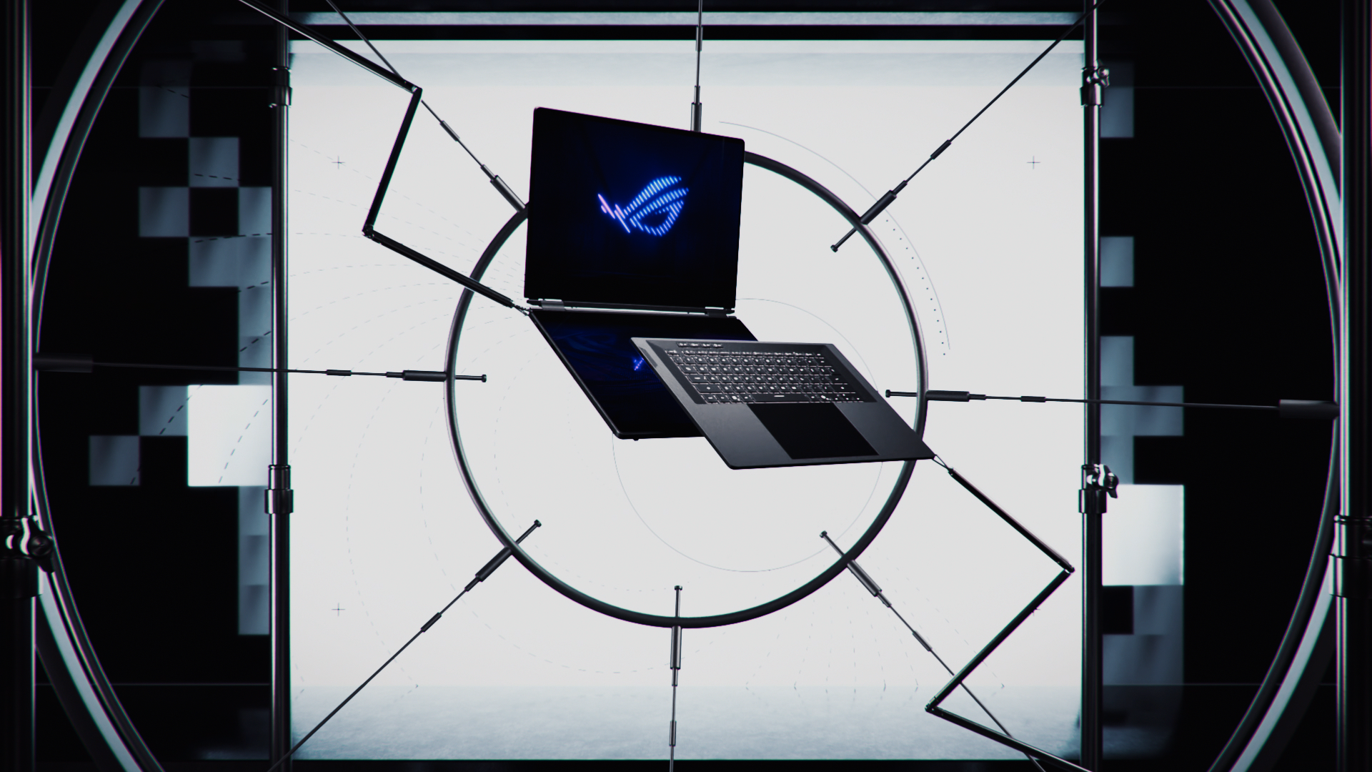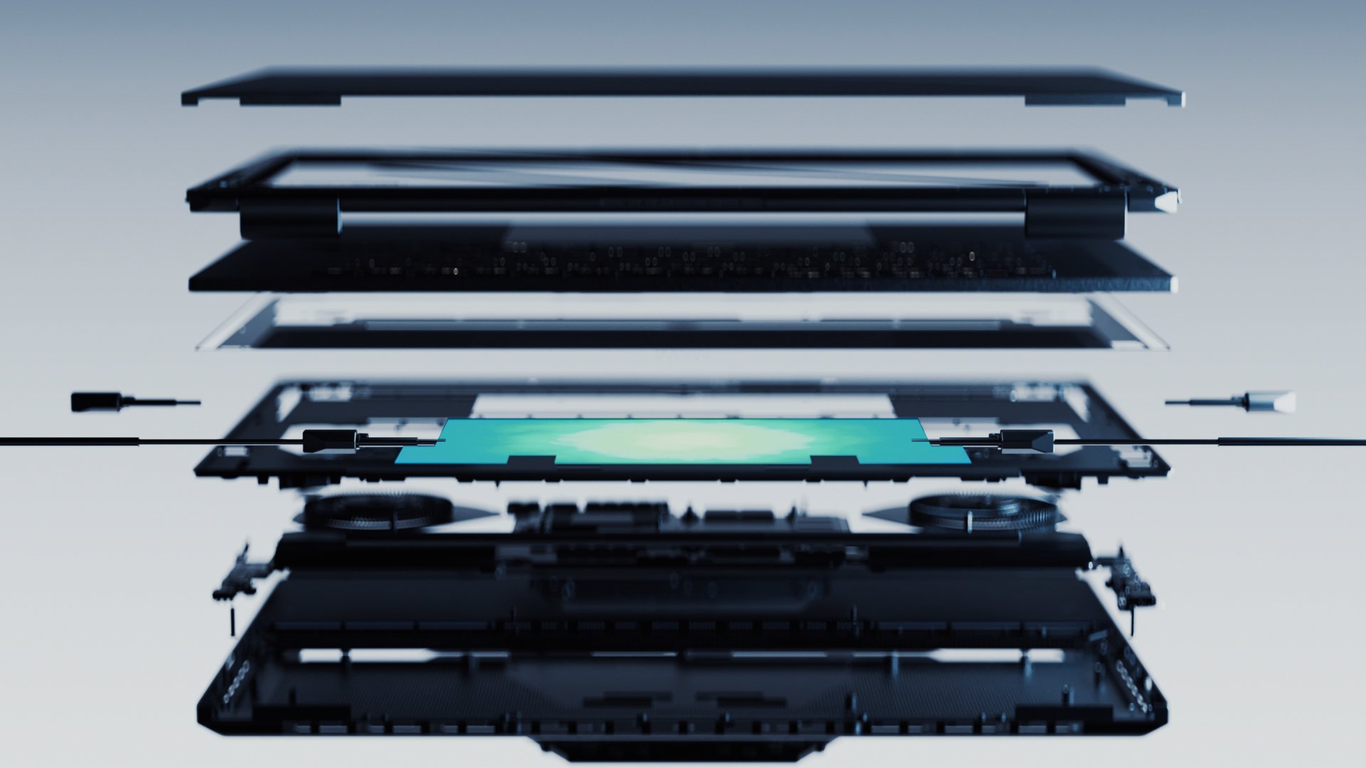 The view pulls back as the system folds into the laptop.Air intake and exhaust elements glow,