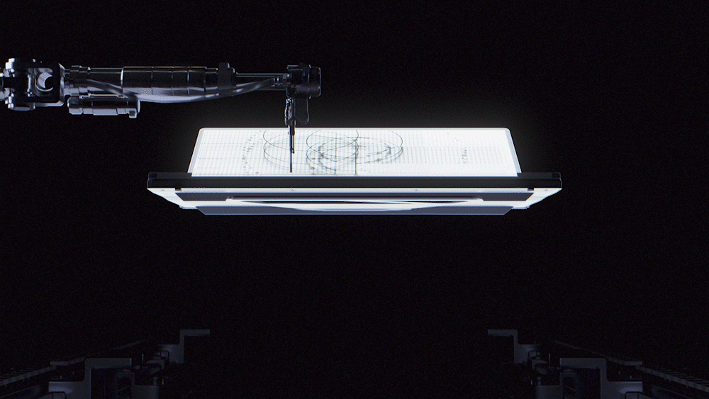 Exploded views, scan lines, and light sweeps reveal structural precision.