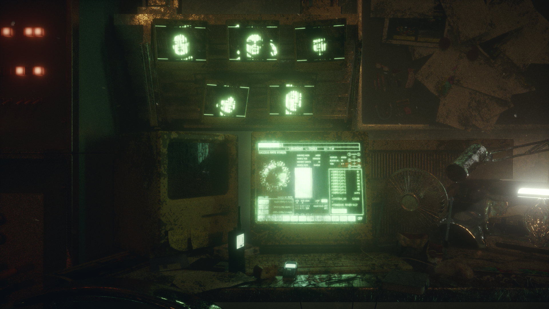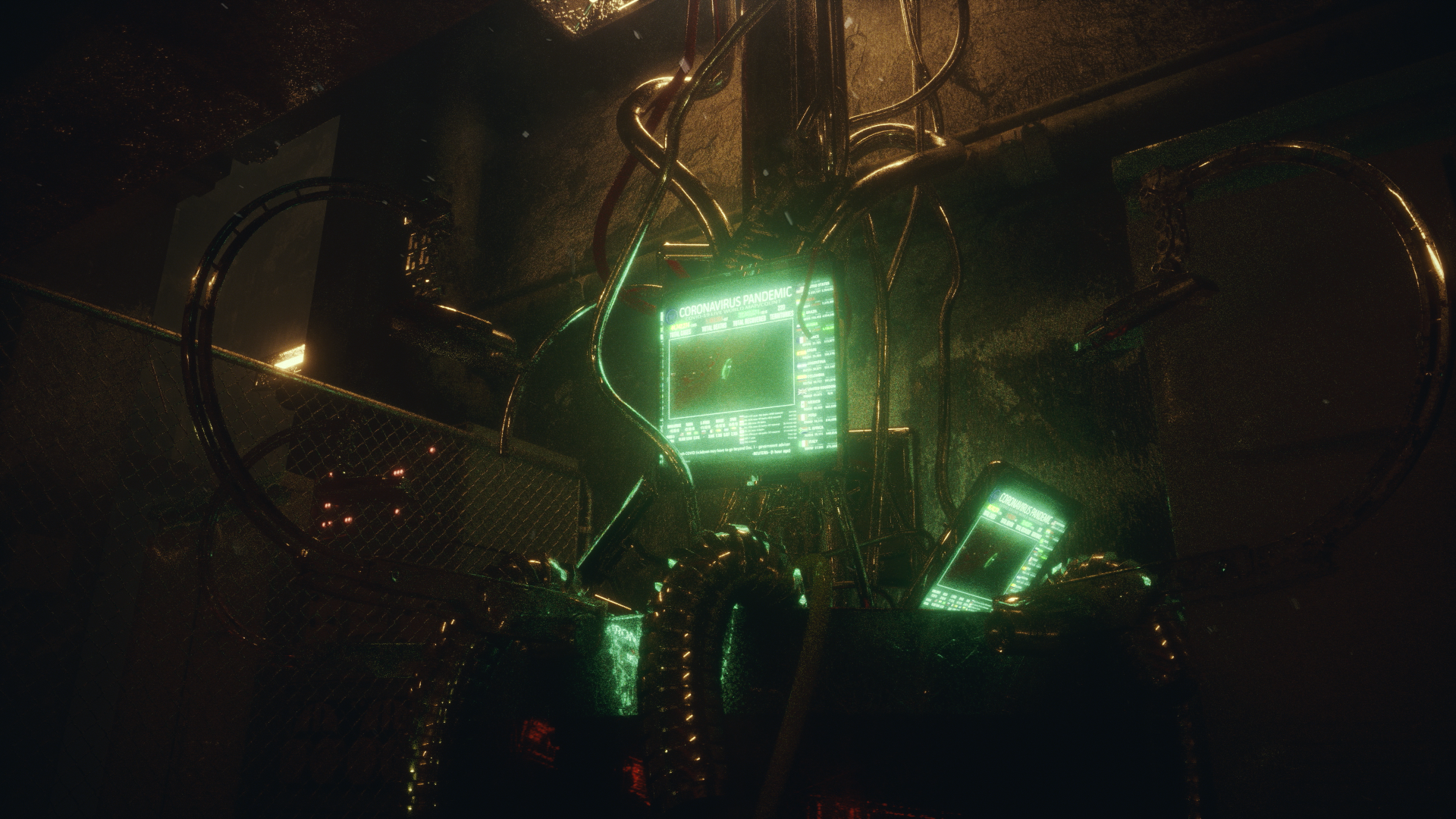 進入這個充滿病毒的世界後馬上看見主角正在被一群身著黑衣的警察追趕著,畫面參照老電影開頭在前情提要的鏡頭手法。主角被追趕到了高塔的橋樑的底部,無路可退,隨即被警察給踢了下去。