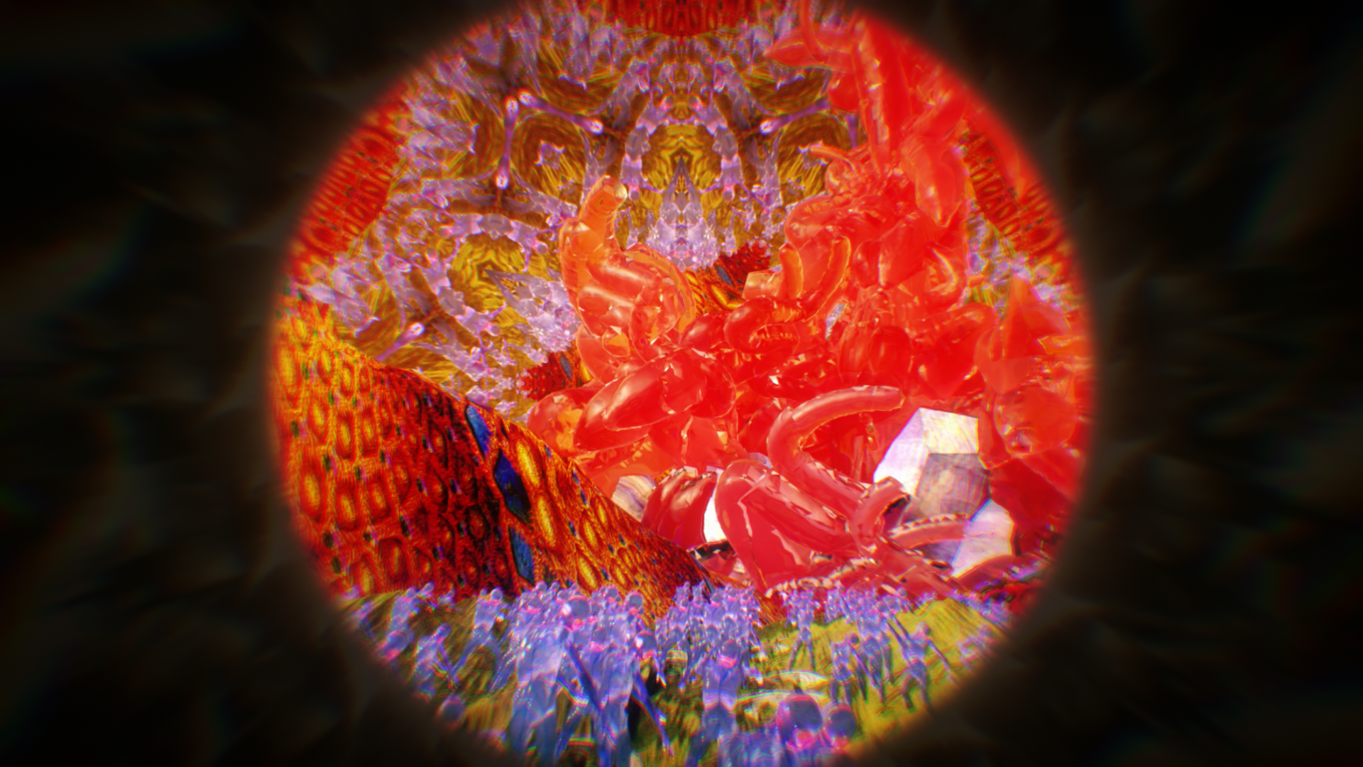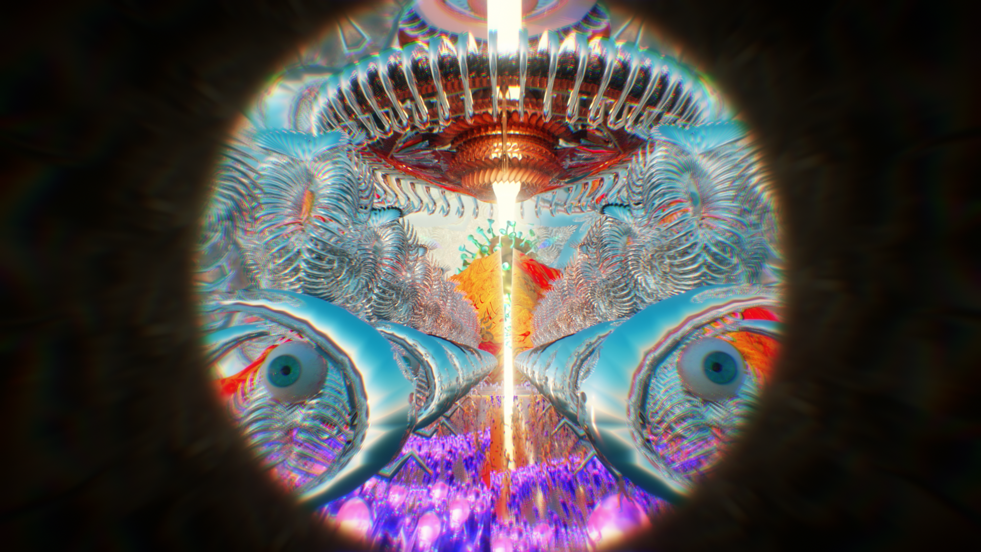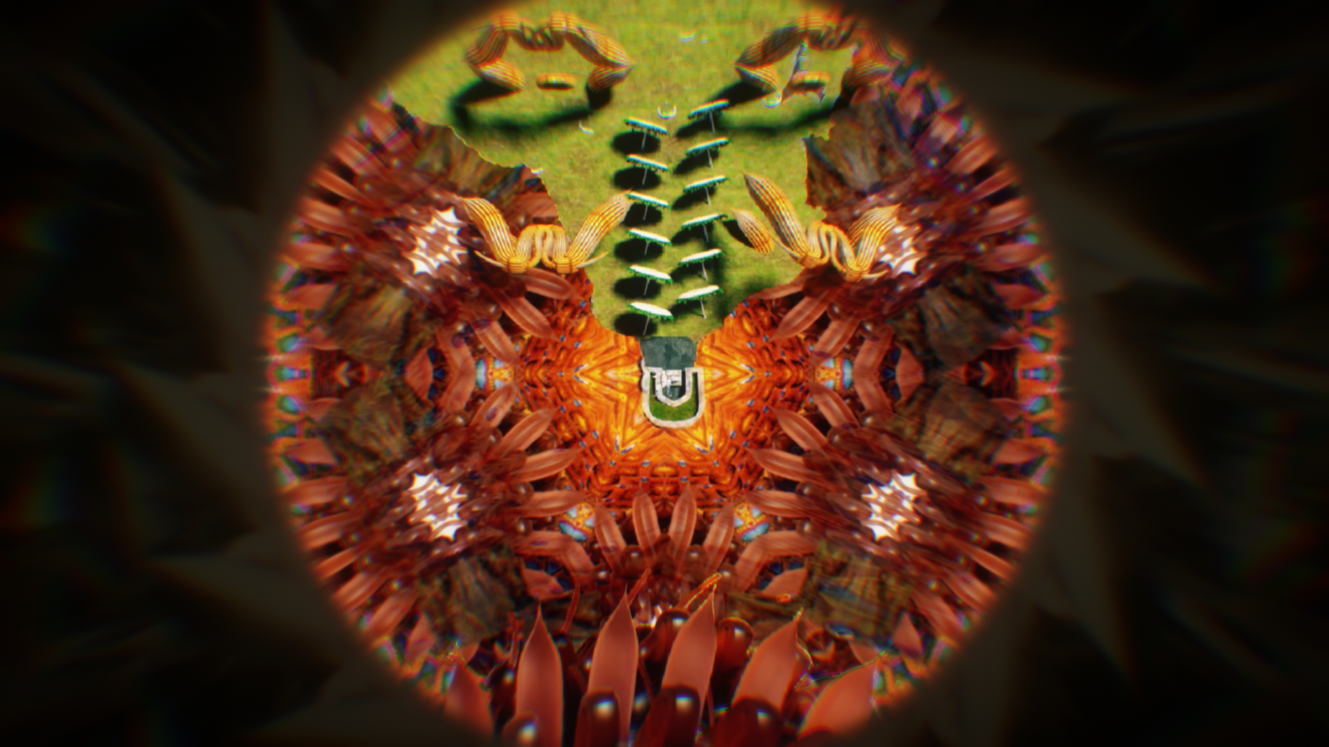 洞窟裡的實驗室中,藏有著美秀集團過去的自製樂器和電火王專輯,而在某個被遺忘的角落放著一台可以窺探到另一個世界的圓形裝置。隨著音樂的躁動慢慢進入圓形裝置內的世界,一個與現實平行卻充滿病毒的世界。
