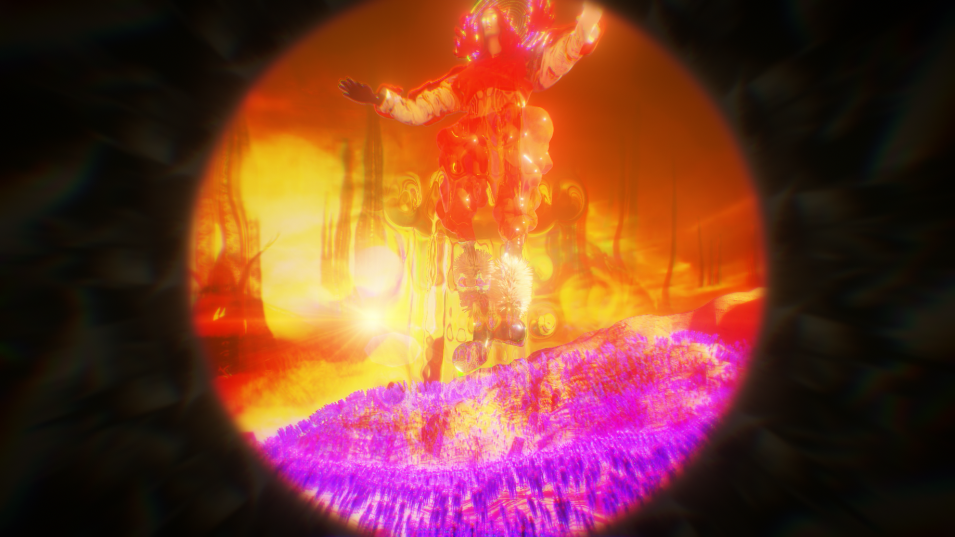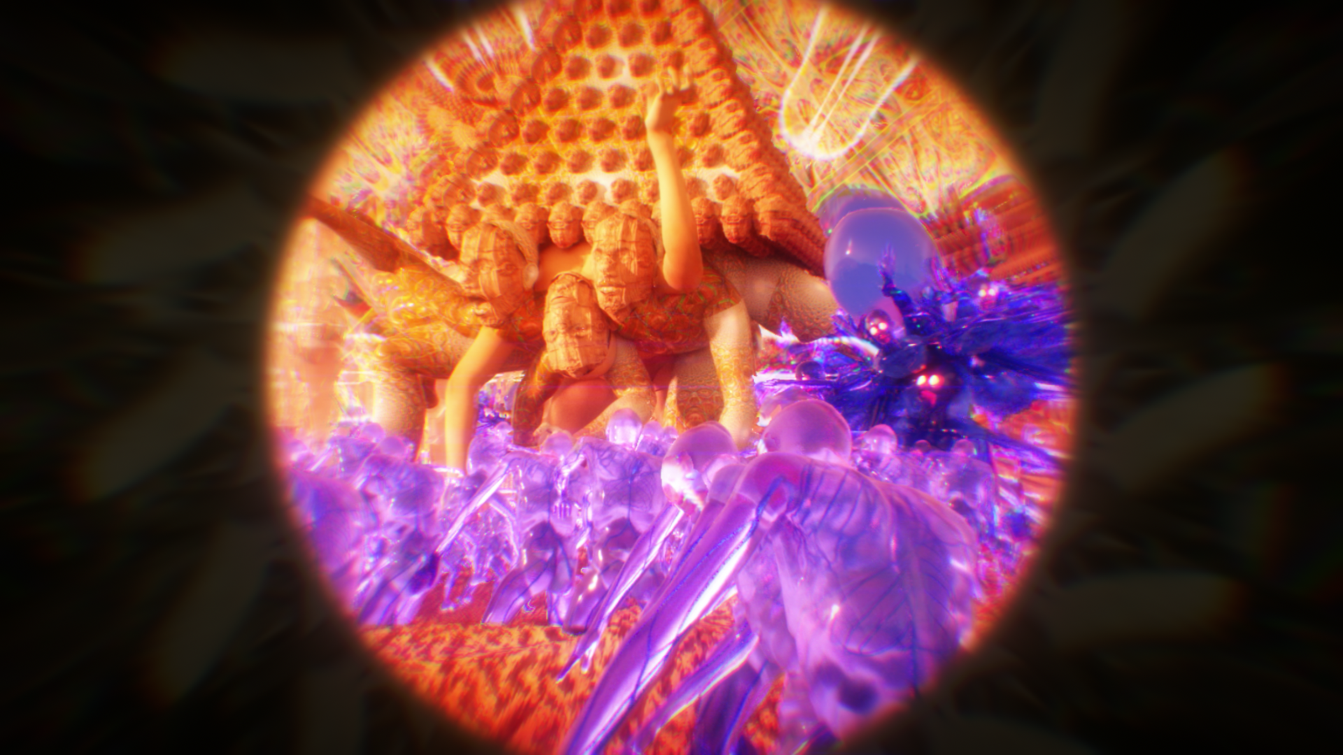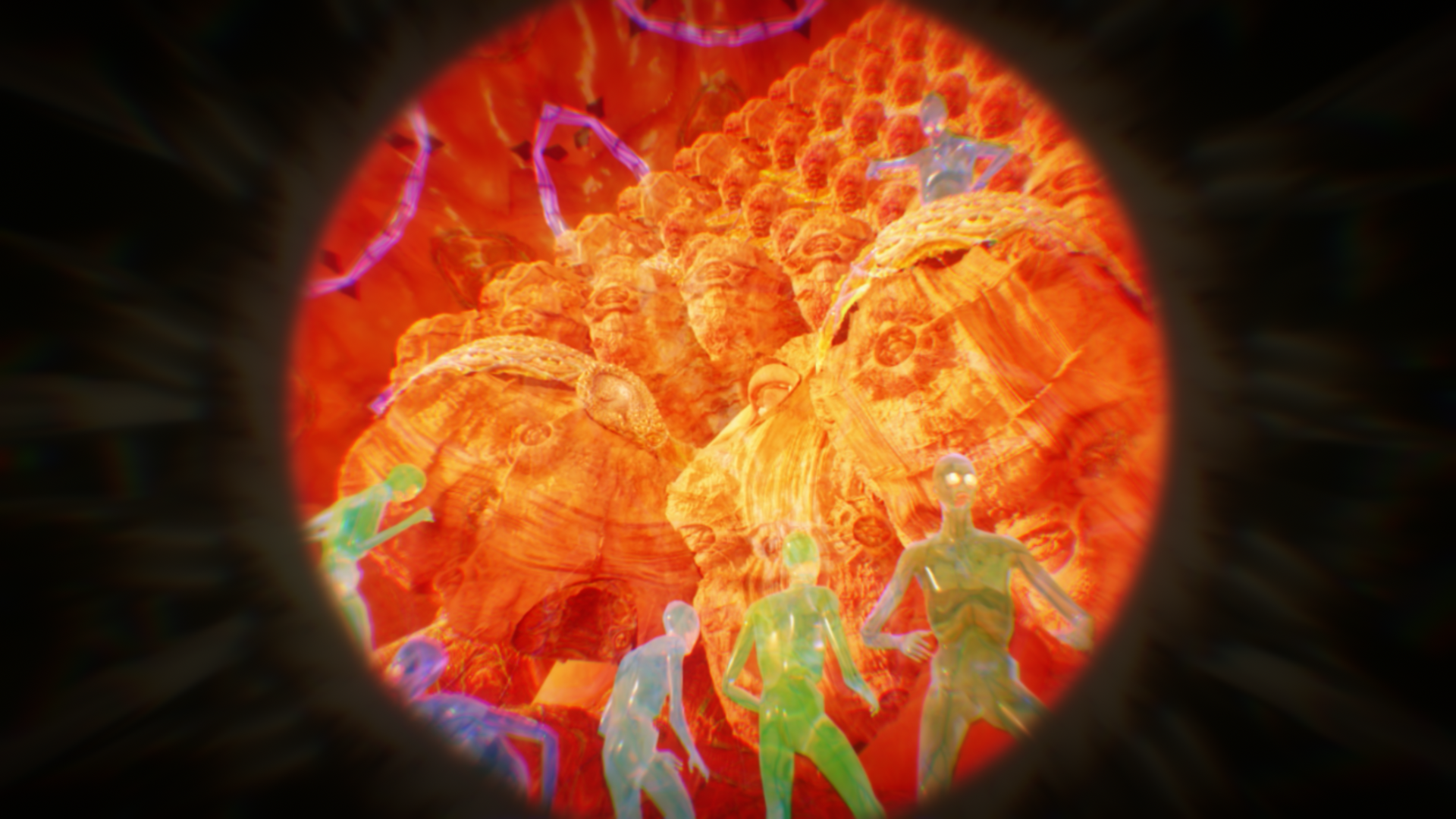 洞窟裡的實驗室中,藏有著美秀集團過去的自製樂器和電火王專輯,而在某個被遺忘的角落放著一台可以窺探到另一個世界的圓形裝置。隨著音樂的躁動慢慢進入圓形裝置內的世界,一個與現實平行卻充滿病毒的世界。
